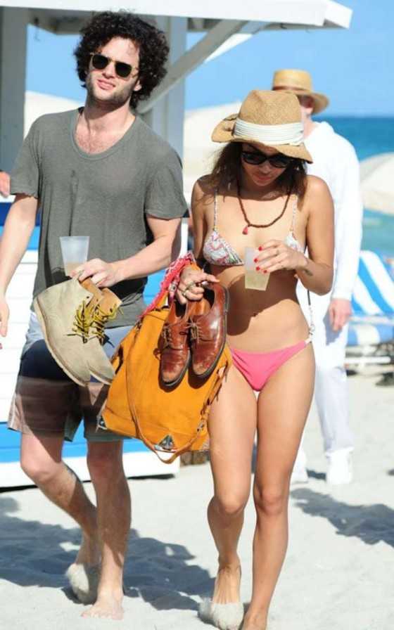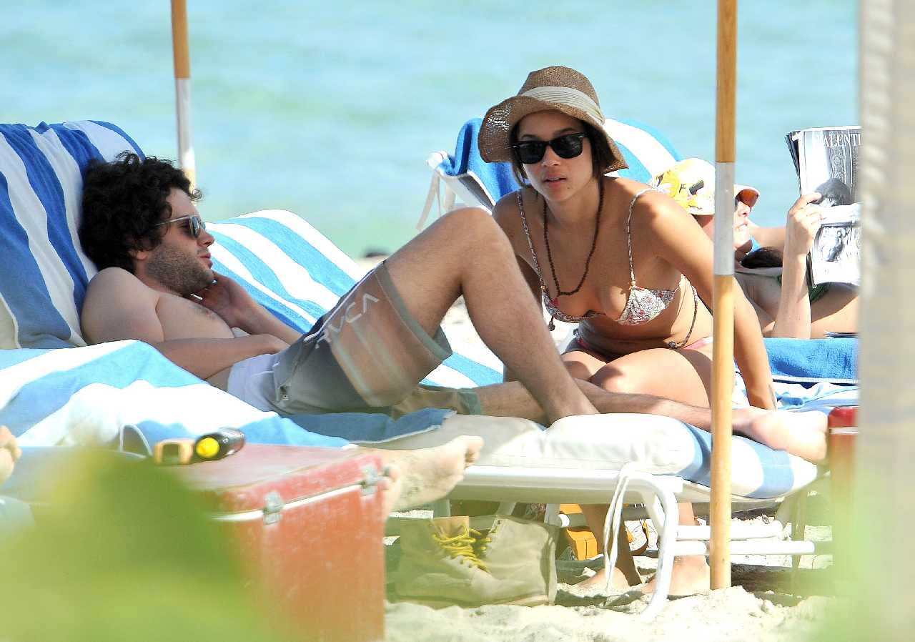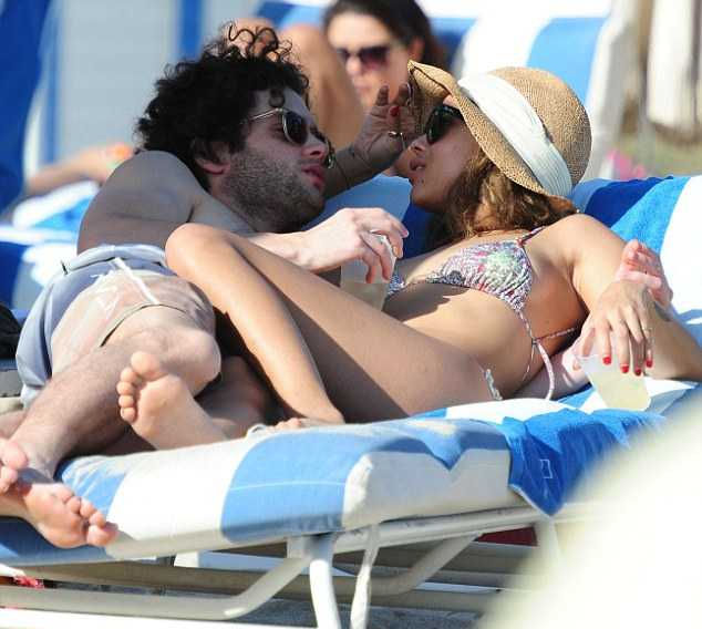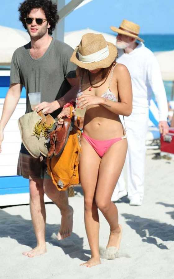 The bikini clad X-Men: First Class actress and her Gossip Girl star beau were seen enjoying some poolside canoodling in Miami today.