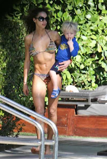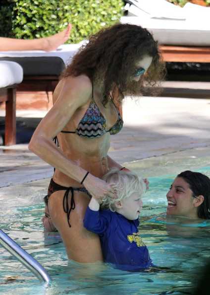 Lilly was also making the most of the sunshine as she perused the pool in a skimpy bikini.